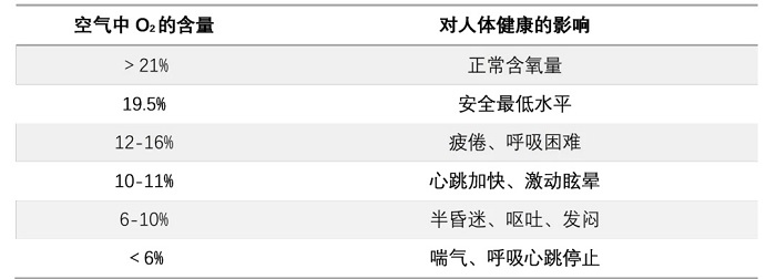 ¿ÕÆøÖÐÑõÆøµÄÕý³£º¬Á¿ÊÇ21%£¬19.5%ÊǶÔÈËÌå²úÉúÓ°ÏìµÄÁÙ½çÖµ¡£µ±ÑõÆøÅ¨¶ÈµÍÓÚ19.5%ʱ£¬ÈËÃÇ»áºôÎü¼ÓËÙ£¬¸Ðµ½Æ£ÀÍÎÞÁ¦;µÍÓÚ12%ʱ»áºôÎüÀ§ÄÑ£¬µÍÓÚ10%ʱ»áŻ͡¢ÎÞ·¨Ðж¯¡¢Ê§È¥ÒâʶÉõÖÁËÀÍö¡£