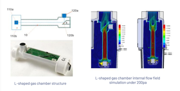 Since its research on ultrasonic gas sensors in 2008, Cubic has made breakthroughs in the fields of ultrasonic transducers, time measurement chips, automatic time difference calculation methods, and simultaneous sensing of process components, especially realizing mass production and application in fields including ultrasonic oxygen flow sensors and ultrasonic biogas meters and have a good technical and industrial foundation. In response to the special requirements of ultra-wide range ratio, wide temperature range, anti-contamination ability, and pulsating airflow measurement required by domestic gas meters, Cubic has developed a new type of residential ultrasonic gas meter with gas density measurement function. At the same time, Cubic designed an L-shaped ultrasonic gas chamber channel through computational fluid dynamics simulation to further reduce costs and improve anti-fouling performance, thereby enhancing the competitiveness of ultrasonic gas meters.