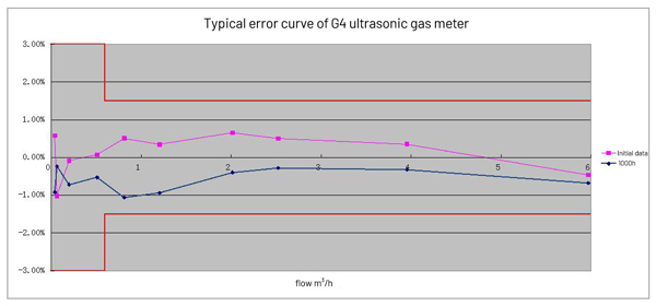 Figure 5. Typical error curve of G4 ultrasonic gas meter